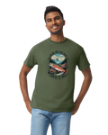 Bring your love of fishing and your love of Christ together with this bold Fishers of Men T-shirt, inspired by Matthew 4:19. Featuring a beautifully illustrated fish in a scenic mountain and lake backdrop, this shirt is perfect for outdoorsmen, ministry wear, church events, retreats, or everyday faith expression.