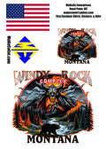 You get 1-4" & 1-2" Windy Rock Fire Design Decal Plus Bonus 2" USA Flag & ME Logo Decal